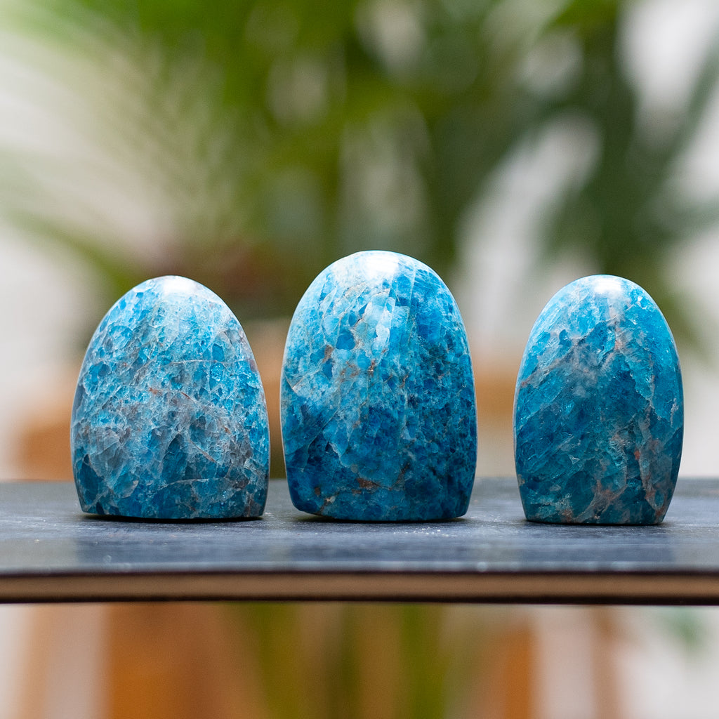 C'est une pierre apaisante qui calme le stress et favorise le lâcher prise. L'Apatite bleue apporte confiance, assurance et améliore ainsi la communication. Elle stimule l'imagination et la créativité.